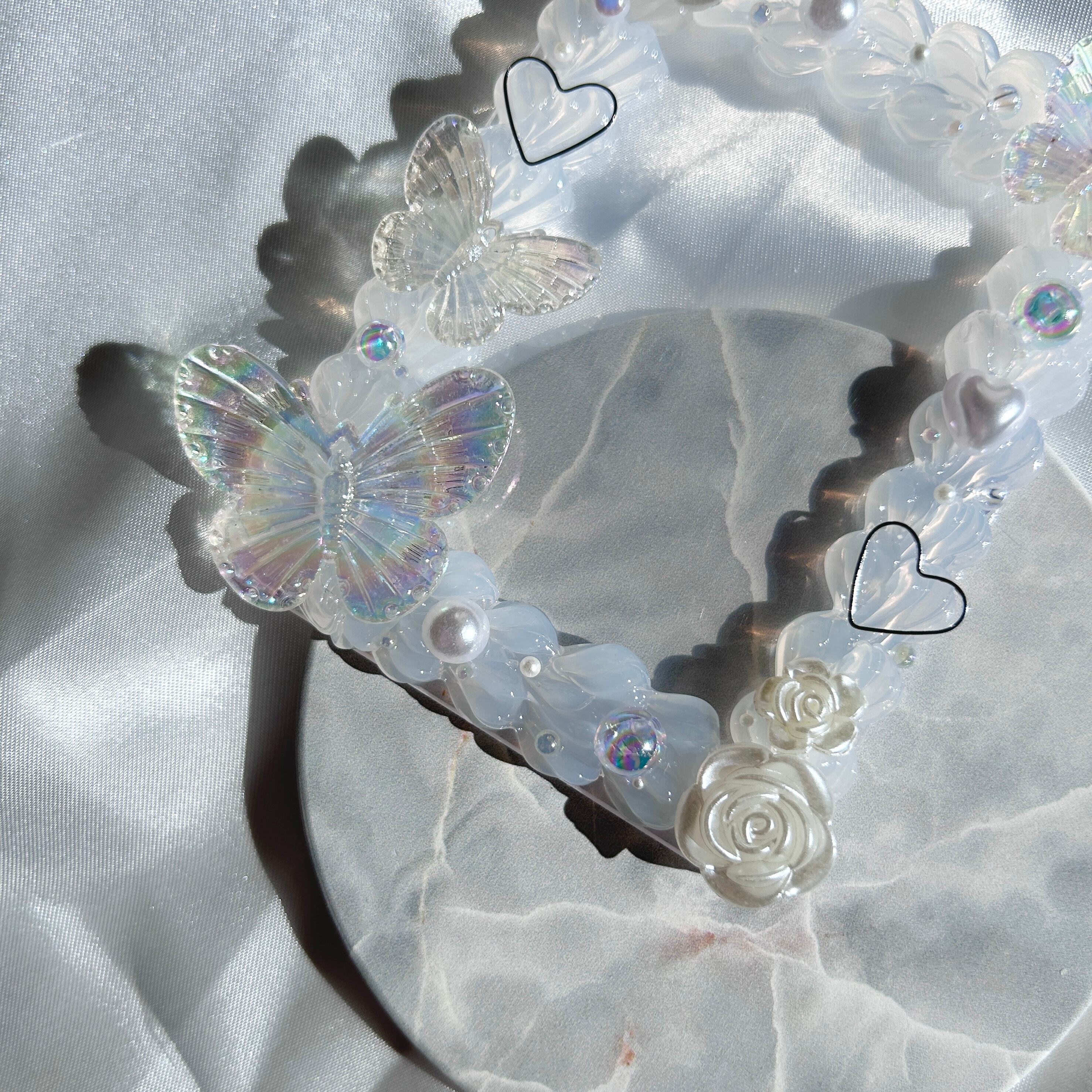 ホワイトと蝶のパーツメインの透明感あふれるホイップデコです