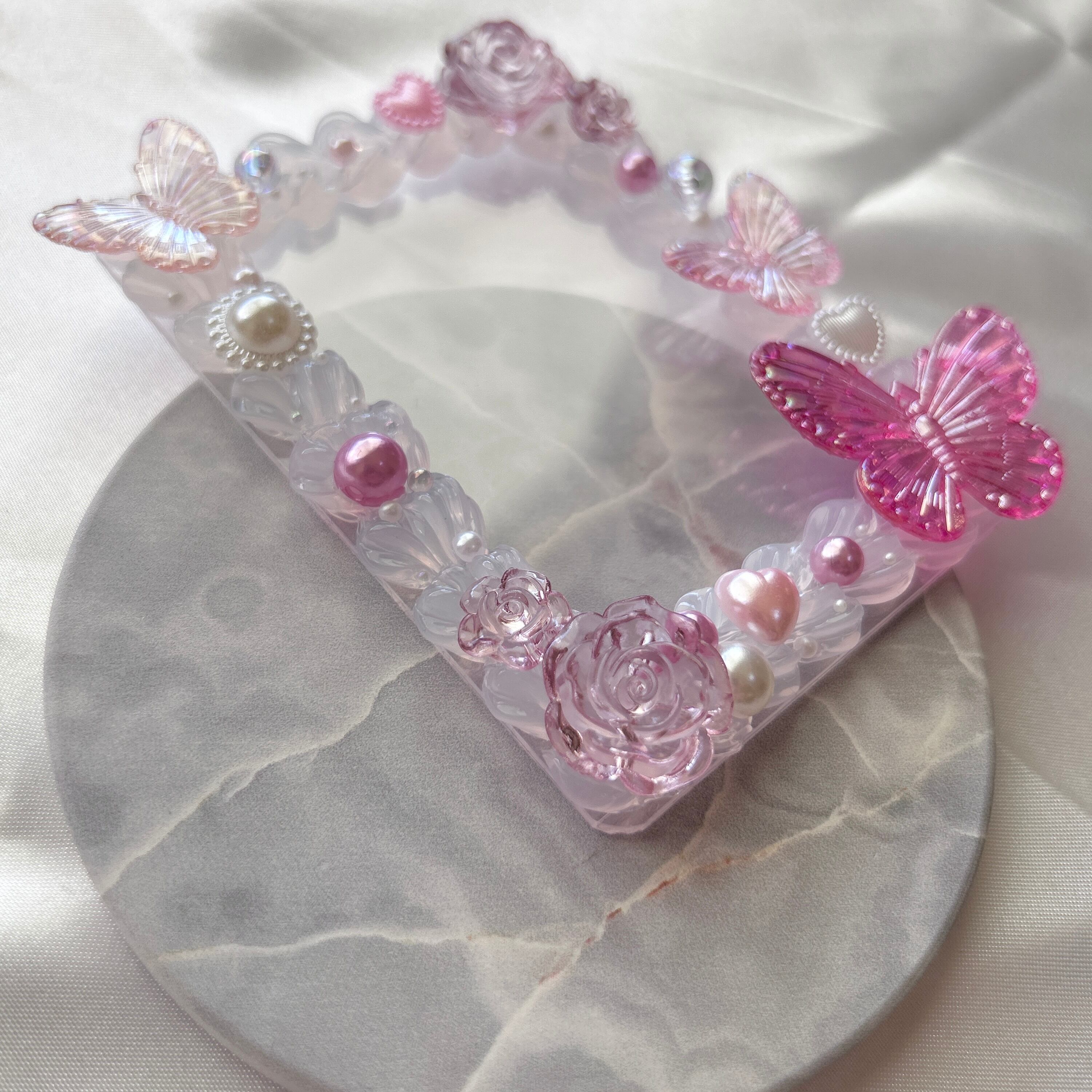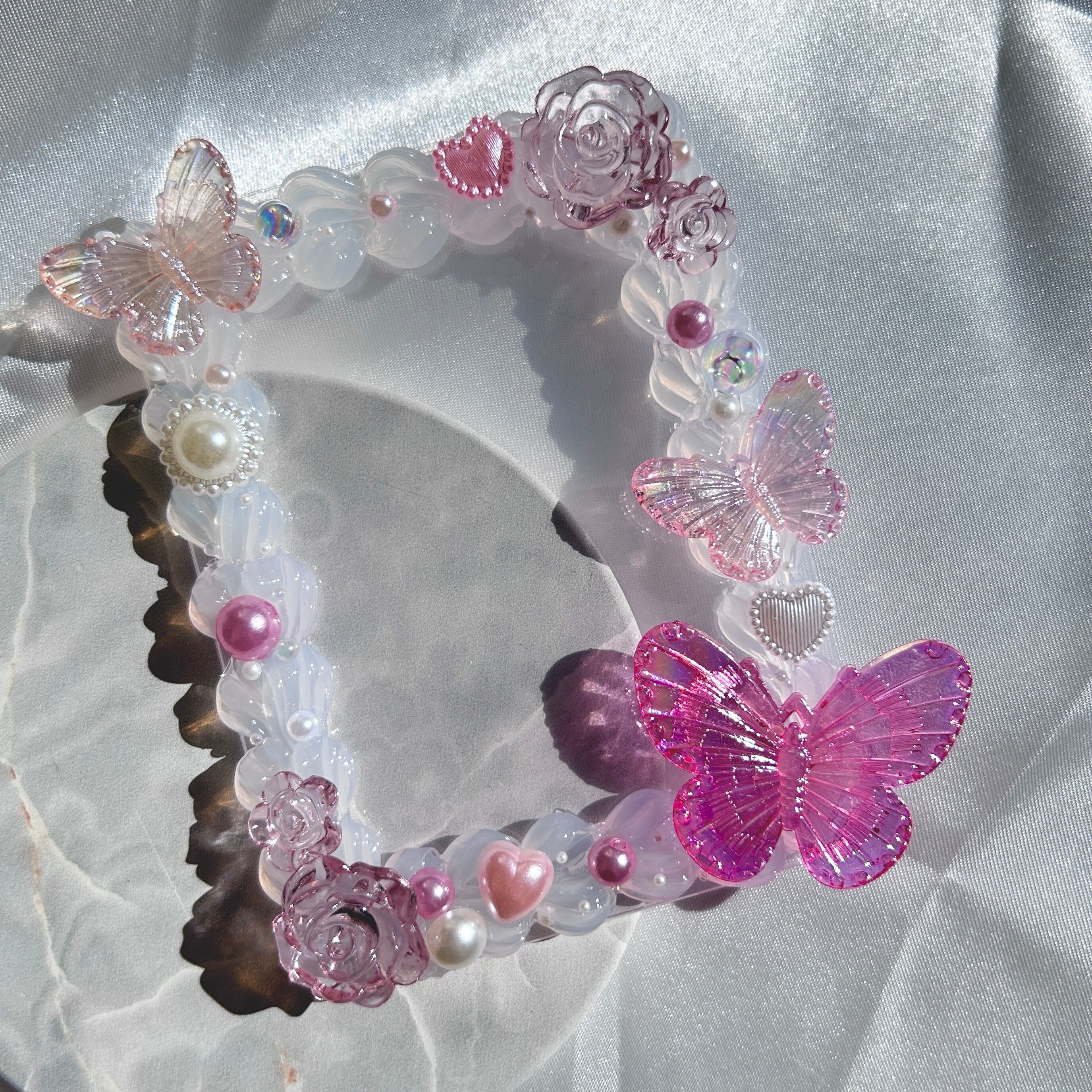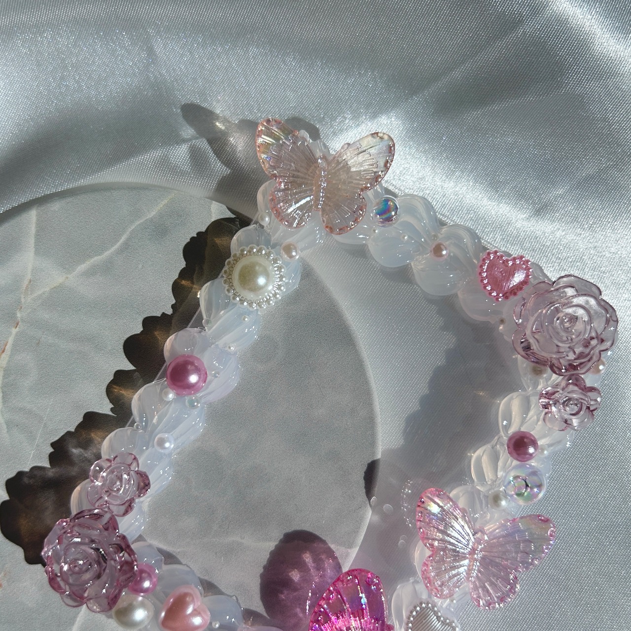ピンクと蝶のパーツメインの透明感あふれるホイップデコです
