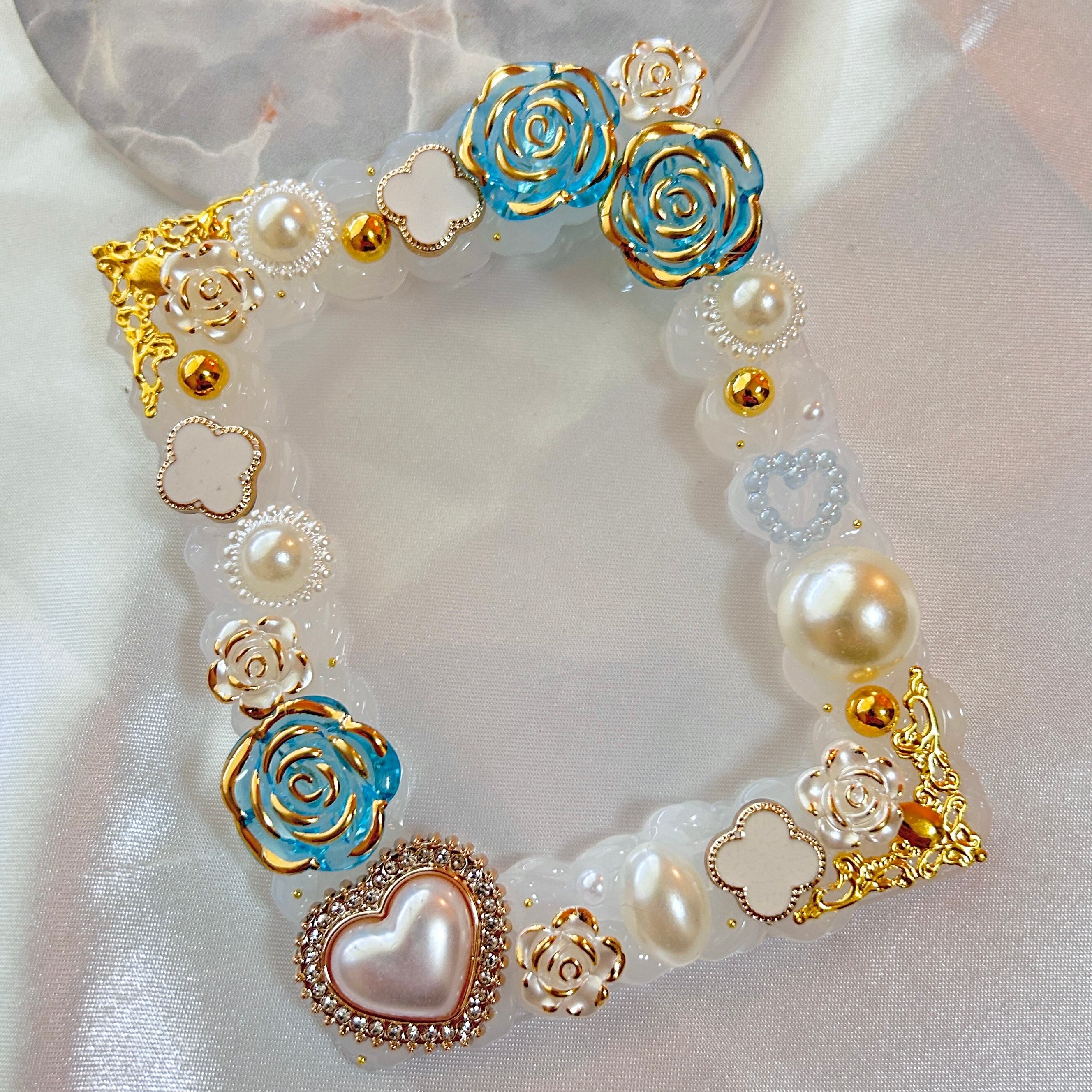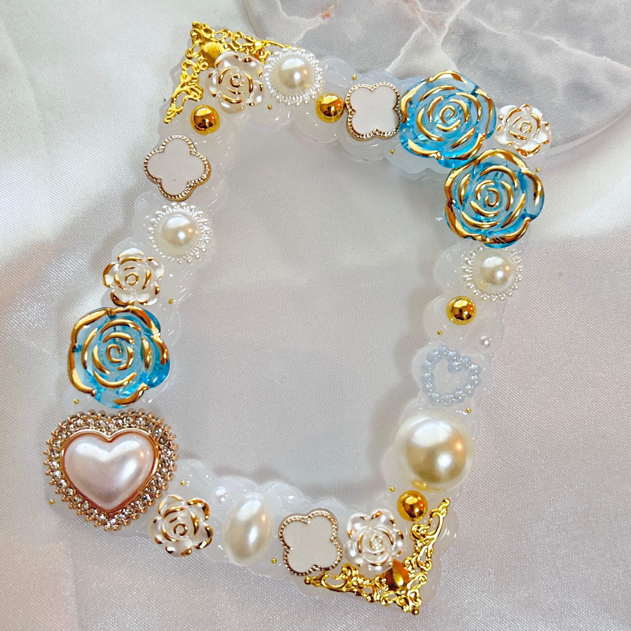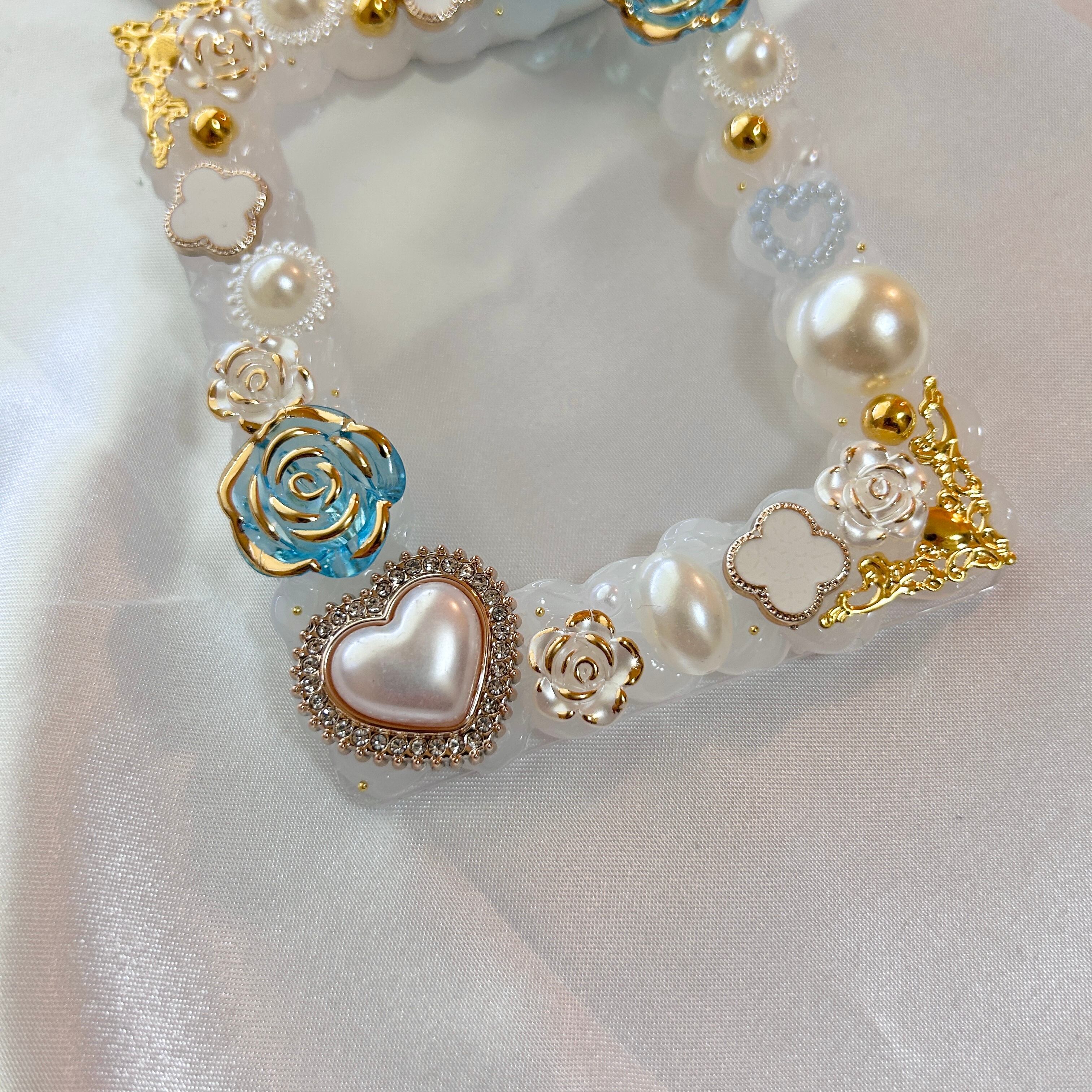 クリアブルーとゴールドの透明感あるホイップデコです♪